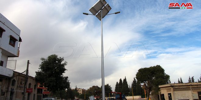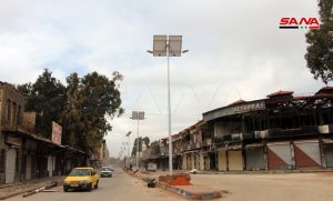 أنهى مجلس مدينة درعا بالتعاون مع برنامج الأمم المتحدة الإنمائي تركيب 15 عموداً للطاقة الشمسية في شارع الشهداء بالسوق التجاري وسط مدينة درعا.