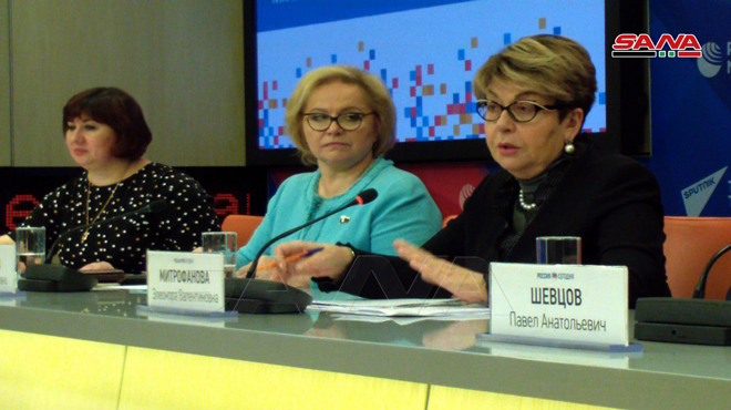 من جهة أخرى أعربت رئيسة الوكالة الروسية للتعاون روس سوترودنيتشستفو إليانورا ميتروفانوفا عن ثقتها بأن الوضع في سورية يتجه نحو الاستقرار مشيرة إلى أن المركز الثقافي والعلمي الروسي في دمشق الذي جرى إغلاقه بعد تعرضه لاعتداءات بالقذائف من قبل التنظيمات الإرهابية سيفتتح قريبا.