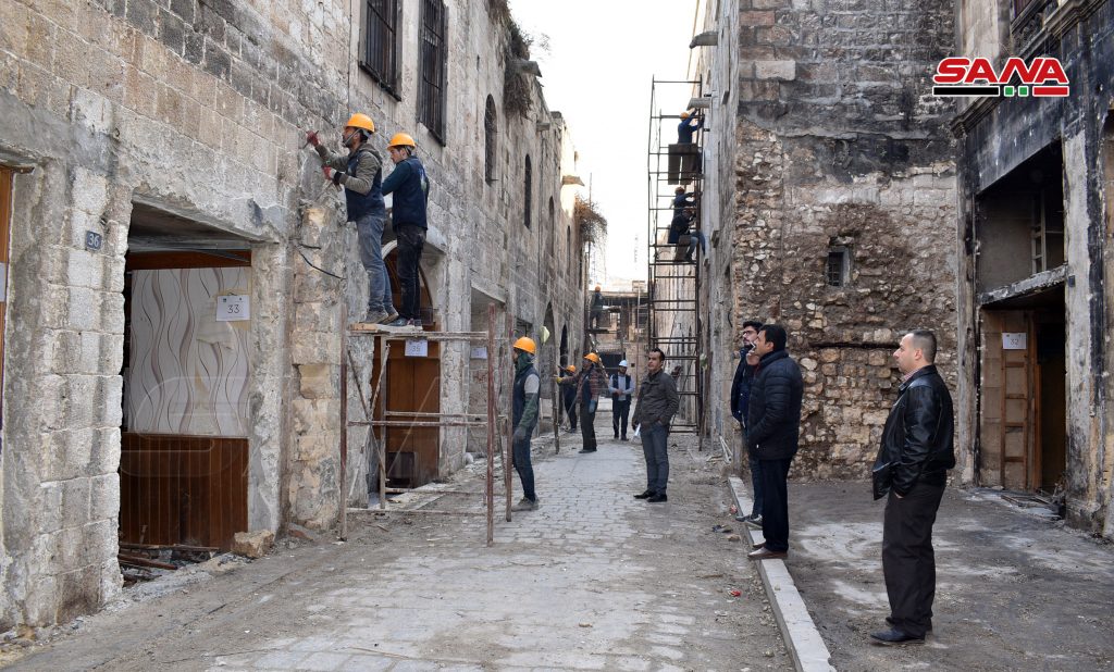 وأشار حلبي إلى أن عمليات إعادة التأهيل تتم عبر مرحلتين في القسم الشمالي وتشمل أعمال ترميم إنشائية للمحال التجارية وفق نظام العمارة التقليدية الحلبية والبناء بالحجر الكلسي باستخدام طريقة الغمس وفيه خان الحرير وخان جاكي أما