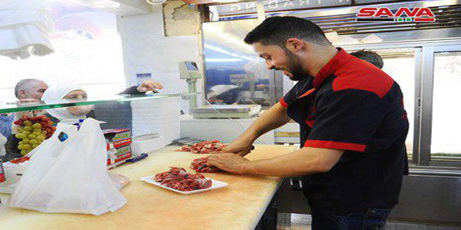 وأكد حناوي أن العمل يتم وفق التوجيهات في المرحلة الحالية على زيادة دور السورية للتجارة من خلال استثمار جميع المنافذ والمراكز وإعادة تطوير وتأهيل المراكز القائمة في المناطق الرئيسية وافتتاح منافذ بيع جديدة في مقرات المؤسسات الحكومية لتوسيع مظلة التدخل الإيجابي في السوق وتوفير المواد والمستلزمات الأساسية للمواطنين والعاملين بسهولة ويسر مشيراً إلى افتتاح 20 صالة ومنفذ بيع خلال العام الحالي في مناطق الغوطة والقلمون والكسوة ليصل مجموع الصالات العاملة إلى 100 صالة والعمل جار لتخديم 10 مواقع بمنافذ بيع في النبك وبلودان والغوطة وقطنا وهيئة الاستشعار عن بعد ومحطة دير علي الكهربائية على أن تتم زيادتها بالتعاون مع المؤسسات العامة إضافة للتوسع في صالات بيع اللحوم وإدخال صالاتين متخصصتين تقدمان خدمة القصاب أي “حسب طلب الزبون من اللحمة”.
