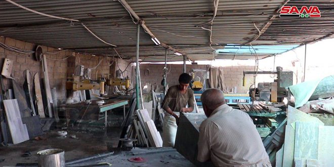 وبين مدير الصناعة بدير الزور المهندس مروان العلي أن المحافظة شهدت عودة ورشات صناعة البلوك والبلاط والحجر الصناعي وقص وجلي الرخام حيث بلغ عدد المنشآت العاملة المرخصة في مجال صناعة مواد البناء 1500 منشأة على مستوى المحافظة لافتاً إلى توفر المواد الأولية التي تقوم عليها هذه الصناعات وتقديم الكثير من التسهيلات الحكومية للإقلاع بالعمل فيها سواء على صعيد تأمين المحروقات أو القروض الصناعية وتسهيلات تتعلق بتسويق ونقل الإنتاج.