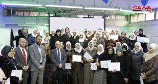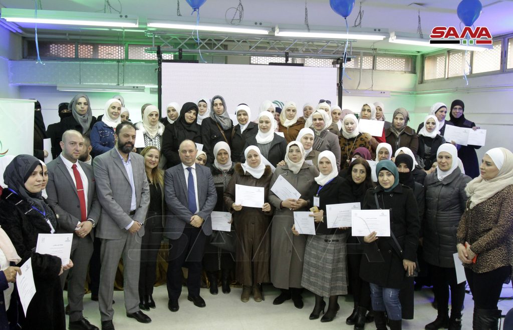 75 سيدة معيلة تم اليوم تخريجهن بعد اتباعهن دورات في الخياطة والكروشيه والحلاقة النسائية وشك النول وصناعة الصابون وإدارة المشاريع الصغيرة ضمن مبادرة “أنتِ الحياة” التي أطلقتها منارة برزة بدمشق التابعة للأمانة السورية للتنمية وبنك سورية الدولي الإسلامي لتمكين دور المرأة في المجتمع وتحقيق الاستقرار المعيشي لها.