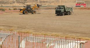 باشرت ورشات فرع المؤسسة العامة للإسكان العسكري بدير الزور أعمال إعادة تأهيل منطقة محيط الملعب البلدي في المدينة.