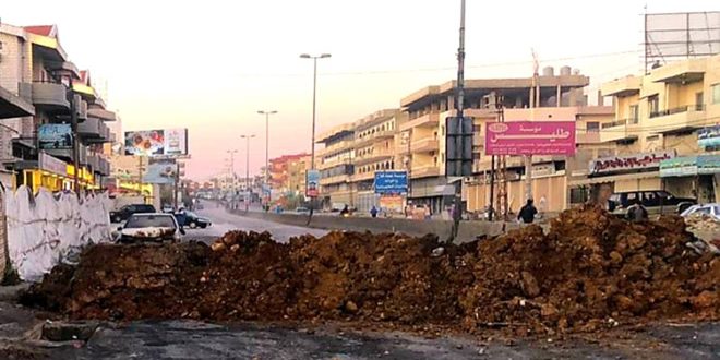 وأشارت الوكالة إلى أن محتجين عمدوا أيضاً إلى إقفال العديد من طرقات البقاع الأوسط بالسواتر الترابية والحجارة والعوائق الحديدية ولا يزال عدد من الطرق الفرعية والرئيسية والدولية مقطوعة ولا سيما الاوتستراد الدولي عند نقطة البالما والطريق العام في البداوي بالاتجاهين وطلعة البحصاص ومستديرة السلام ومسارب مستديرة المرج والطريق الدولية مقابل فندق “الكواليتي ان” فضلاً عن عدد من الطرق الداخلية حيث يعمل الجيش اللبناني على إعادة فتحها.