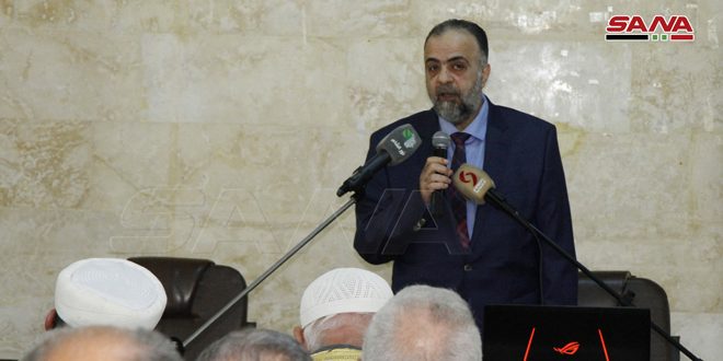 وخلال الاجتماع أوضح وزير الأوقاف أن سورية تتعرض لحرب اقتصادية وهي وجه من أوجه الحرب التكفيرية الإرهابية الوهابية التي قدم الشعب السوري آلاف الشهداء في مواجهتها مؤكداً أنه كما انتصرت سورية على الحرب الإرهابية التكفيرية بجيشها وشعبها وقائدها ستواجه الحرب الاقتصادية ولن يستطيعوا إخضاعها.