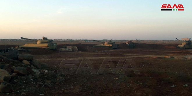 وذكر مراسل سانا من مناطق العمليات في الريف الجنوبي الشرقي أن وحدات من الجيش خاضت خلال الساعات الماضية اشتباكات عنيفة ضد إرهابيي تنظيم “جبهة النصرة” وإرهابيي ما يسمى “أجناد القوقاز” بريف إدلب الجنوبي الشرقي طهرت على إثرها قرى ومزارع أم جلال وربيعة وخريبة وشعرة العجايز وأم توينة وتل محو والفريحة وبريصة وأبو حبة وتل الشيح.