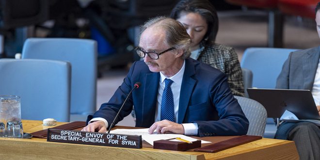 جدد المبعوث الخاص للأمين العام للأمم المتحدة إلى سورية غير بيدرسون التأكيد على ضرورة الحل السياسي للأزمة في سورية وفق قرار مجلس الأمن رقم 2254 الذي يؤكد على احترام سيادتها ووحدة وسلامة أراضيها.