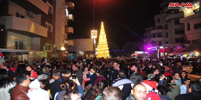 احتفاء بقدوم أعياد الميلاد ورأس السنة الميلادية وتأكيداً على أواصر المحبة والإخاء تم مساء اليوم ضمن أجواء احتفالية إضاءة شجرة ميلاد السيد المسيح رسول المحبة والسلام أمام برج الريم في مدينة السويداء بحضور حشد كبير من الفعاليات الأهلية والرسمية.