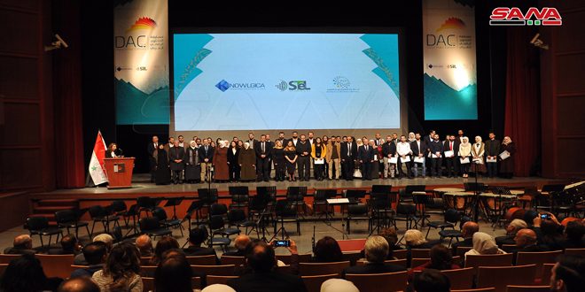 كرمت الجامعة الافتراضية السورية اليوم على مسرح دار الأسد للثقافة والفنون بدمشق الفرق الفائزة في مسابقة المحتوى الرقمي العربي التي تقام في سورية للمرة الأولى وذلك بحضور الدكتورة نجاح العطار نائب رئيس الجمهورية رئيس مجلس أمناء الجامعة.