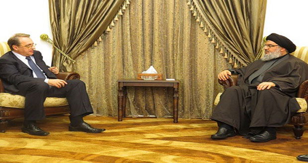 بحث الأمين العام لحزب الله السيد حسن نصر الله خلال لقائه أمس المبعوث الخاص للرئيس الروسي نائب وزير الخارجية ميخائيل بوغدانوف الذي يزور بيروت حاليا مستجدات الأوضاع بالمنطقة وخاصة في لبنان وسورية.