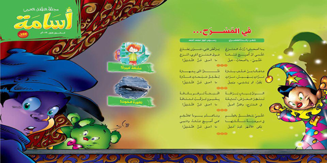 شجع عدد شهر كانون الأول من مجلة أسامة الأطفال على الفن والإبداع بدءاً من غلافه الذي رسمه الفنان فواز محمد أحمد وتضمن قصيدة الشاعرة رائدة الخضري بعنوان ما أحلى فن التمثيل.