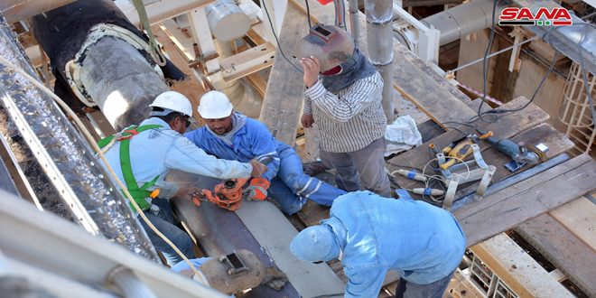 فريق سانا زار المعمل ورصد حركة العمل المتواصل وعمليات الإصلاح التي ينفذها فنيو المعمل حيث بين المهندس غسان طراف مدير عام الشركة السورية للغاز خلال إشرافه على عمليات الإصلاح أنه عند تعرض المعمل للهجوم الإرهابي قامت الكوادر الفنية على الفور بتحويل العمل إلى خط الطوارئ واستخدامه خلال فترة تعرض المنشأة للاعتداء وبعد التأكد من عودة الأمان تمت إعادة الغاز للمعمل دون أي توقف.