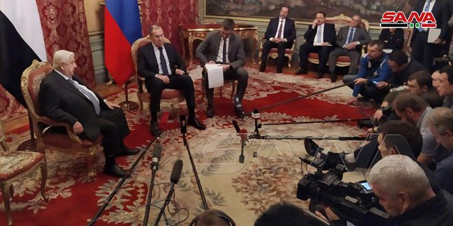 وأوضح المعلم في مستهل محادثاته مع وزير الخارجية الروسي سيرغي لافروف في موسكو اليوم قبيل انطلاق الاجتماع الـ 12 للجنة السورية الروسية المشتركة للتعاون التجاري والاقتصادي والعلمي والفني أن سورية تتعرض لعدوان تركي مستمر على وحدتها وسيادتها في شمال سورية كما تتعرض لسرقة منظمة لثروات شعبها النفطية من قبل الولايات المتحدة وهذه السرقة والعدوان التركي يتمان بقوة السلاح بمعنى أنهما قرصنة ولم تكتف الولايات المتحدة والنظام التركي بذلك بل قامت واشنطن عبر وجود قواتها المحتلة في منطقة التنف بإرسال طائرات مسيرة لقصف منشآت نفطية في مدينة حمص قبل أيام إضافة إلى قيام العدو الإسرائيلي بالاعتداء أمس على سورية عبر إطلاق مجموعة صواريخ على دمشق ومحيطها.