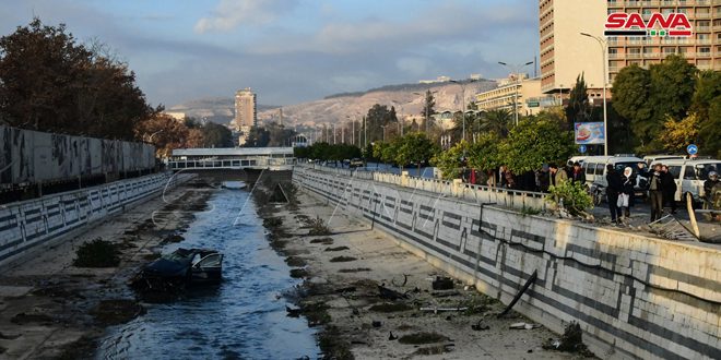 أصيب سائق بعد سقوطه مع سيارته في مجرى نهر بردى وسط دمشق صباح اليوم.