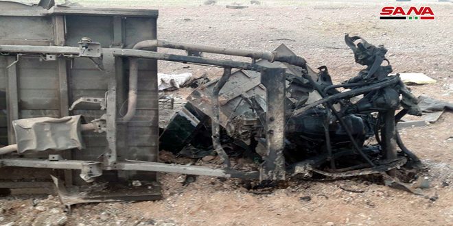 كاميرا سانا في بلدة التح المطهرة من الإرهاب بريف إدلب الجنوبي الشرقي ترصد قتلى الإرهابيين وعرباتهم المدمرة (صور وفيديو)