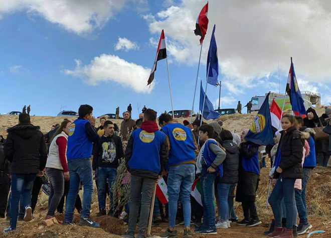 بمناسبة عيد الشجرة الثامن والستين وتحت شعار (إيد بإيد بترجع خضرا من جديد) نفذت وزارة التربية اليوم بالتعاون والتنسيق مع وزارة الزراعة والإصلاح الزراعي حملة تشجير تتضمن زراعة عشرة آلاف شجرة حراجية منوعة على اوتستراد دمشق بيروت في منطقة الصبورة (قوز عنتر) بمشاركة عدد كبير من الطلاب والمدرسين والكوادر العاملة في التربية والجهات الشريكة.