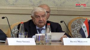 وأكد المعلم أن الشعب السوري يقدر عاليا مواقف روسيا الاتحادية إزاء الحرب الظالمة التي فرضت على بلاده ويتطلع ويرحب بمساهمتها في عملية إعادة الإعمار ودعم الجهود الوطنية السورية لتجاوز آثار العدوان وعودة الأمن والأمان والرفاه إلى ربوع سورية.
