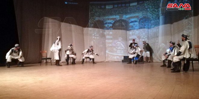 العرض الذي استضافه مسرح دار الثقافة بحمص واستمر قرابة الساعة قال عنه محمد حلبي مدير فرقة “خطا” إنه يحمل طابع البيئة الشامية وتتخلله كوميديا وهو نتاج عمل فريق من 17 شخصاً بينهم 13 راقصاً وراقصة والباقي ممثلان واثنان للعراضة.