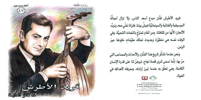 وعرض الدكتور فائز الداية ضمن سلسلة “أعلام ومبدعون” الصادرة عن الهيئة العامة السورية للكتاب في وزارة الثقافة تاريخ هذا الفنان والأحداث والمصاعب التي مر بها ليبرهن على قدرة الإنسان الكامنة التي تحلق به عندما تبرز إرادته ومعرفته لأهدافه في الحياة.