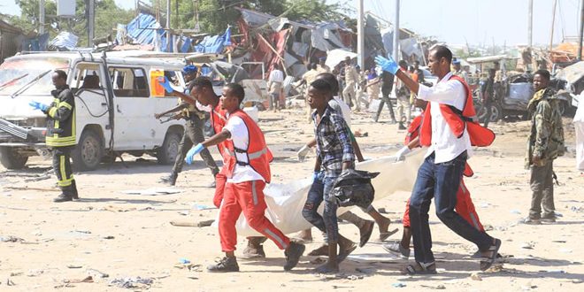 ارتفع عدد ضحايا التفجير الإرهابي بسيارة مفخخة عند نقطة تفتيش أمنية مزدحمة في العاصمة الصومالية مقديشو اليوم إلى 76 قتيلا وعشرات المصابين.