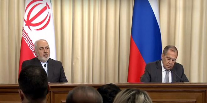 جدد وزيرا الخارجية الروسي سيرغي لافروف والإيراني محمد جواد ظريف التأكيد على ضرورة القضاء على الإرهاب في سورية بشكل نهائي مشيرين إلى أن بعض الدول تواصل حماية التنظيمات الإرهابية فيها في انتهاك لقرارات مجلس الأمن الدولي.