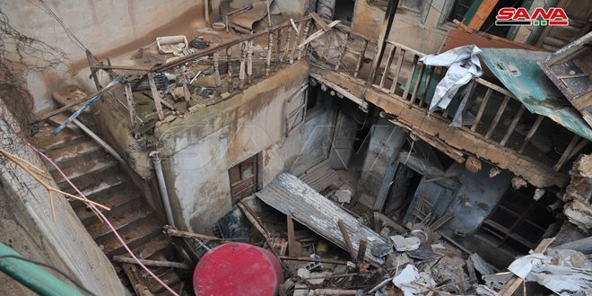 انهار منزل وجزء من منزل آخر اليوم في منطقة القنوات بدمشق القديمة دون أن يتسبب ذلك بوقوع إصابات.