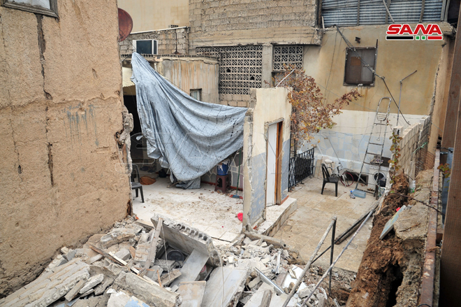 وأفاد مصدر في قيادة شرطة دمشق لمندوبة سانا بأن المنزلين القديمين في حارة التيامنة بمنطقة القنوات مكونان من الخشب والطين مشيرا إلى انهيار أحدهما وهو مهجور فيما تهدمت غرفة من المنزل الآخر في الوقت الذي لم يكن قاطنوه داخله واقتصرت الأضرار على الماديات.