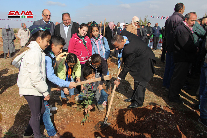 بمشاركة فعاليات رسمية وشعبية احتفلت محافظة درعا اليوم بعيد الشجرة الثامن والستين ضمن موقع جسر ازرع على اتوستراد درعا دمشق.