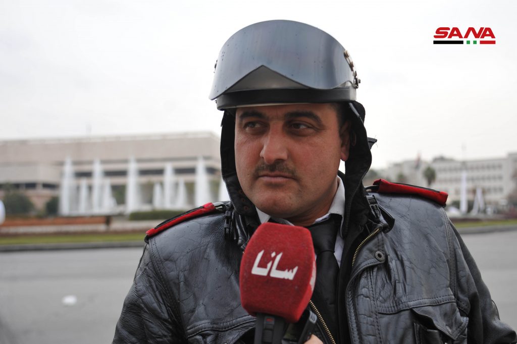 رئيس عمليات فرع مرور دمشق العقيد محمود صالح بين أن قسم العمليات في دمشق يقوم بتغطية جميع التقاطعات لإعطاء انسيابية في حركة السير وتسهيل مرور المواطنين في الأيام العادية والأعياد والعطل والمناسبات الرسمية مشيرا إلى أن شرطة المرور تعطي الأفضلية للإسعاف والإطفاء وتسهل مرور المهمات الرسمية والمراسم والإبلاغ عن أي طارئ.