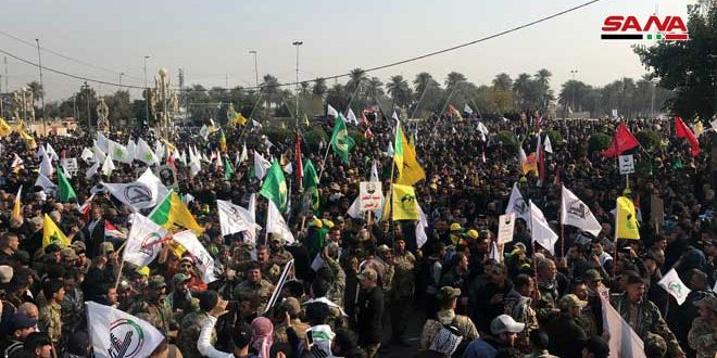 شارك آلاف العراقيين اليوم في مراسم تشييع جثامين قائد فيلق القدس في الحرس الثوري الإيراني الفريق قاسم سليماني ونائب رئيس هيئة الحشد الشعبي العراقي أبو مهدي المهندس ورفاقهما الذين استشهدوا جراء عدوان أمريكي بالصواريخ فجر أمس على طريق المطار الدولي في بغداد.