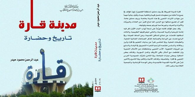 جمع المؤلف عبد الرحمن محمود حيدر من خلال كتابه “مدينة قارة تاريخ وحضارة” ما أمكنه من معلومات تحمل قيمة وثائقية تخص جانبا مهما من جوانب التاريخ والتراث والبيئة في المدينة.