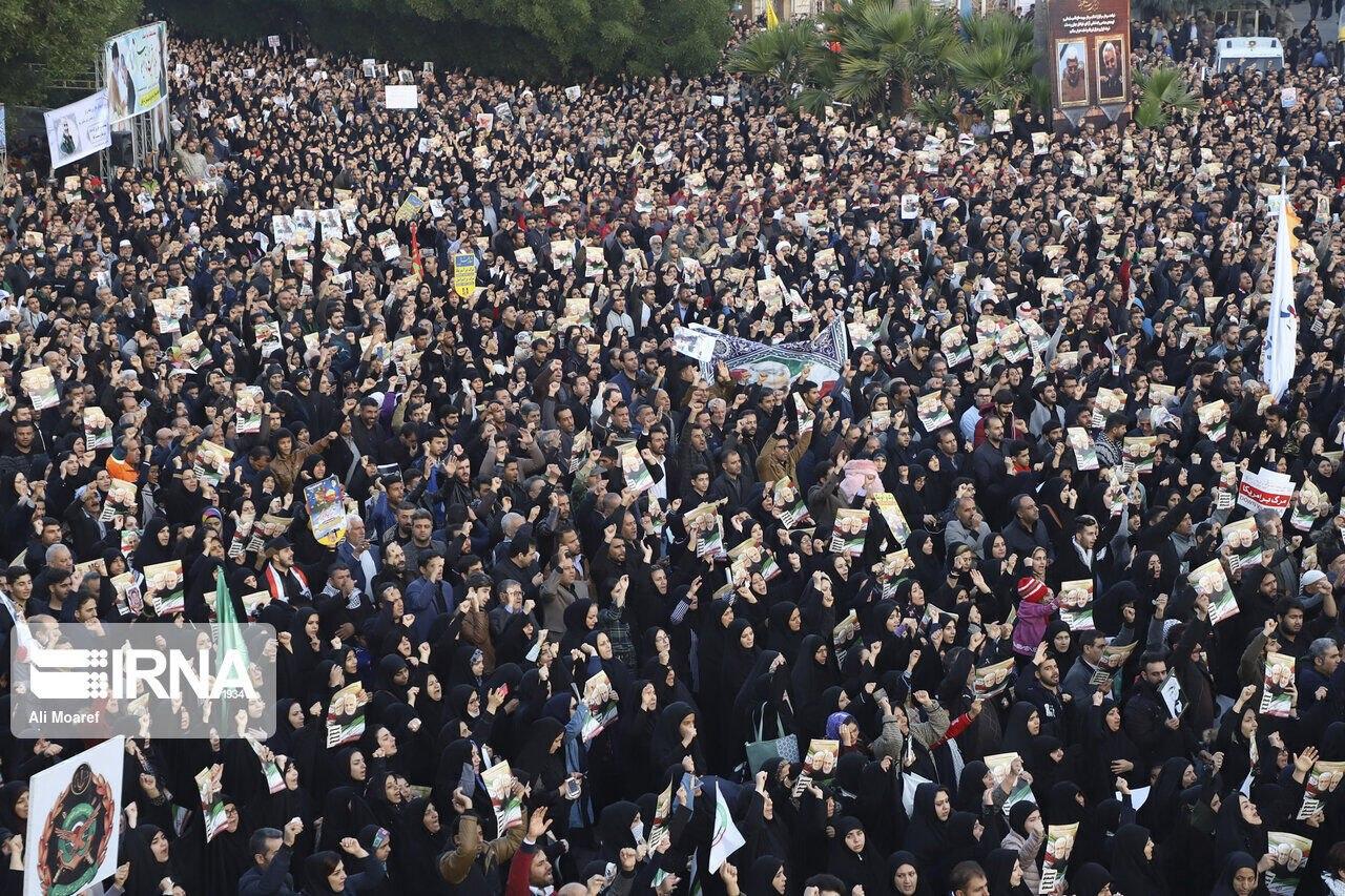 ووفقا لوكالة تسنيم فقد احتشد الناس منذ ساعات الصباح الأولى في الساحة ورددوا العبارات المنددة بالإرهاب الأمريكي مطالبين بالانتقام لدماء الشهداء.