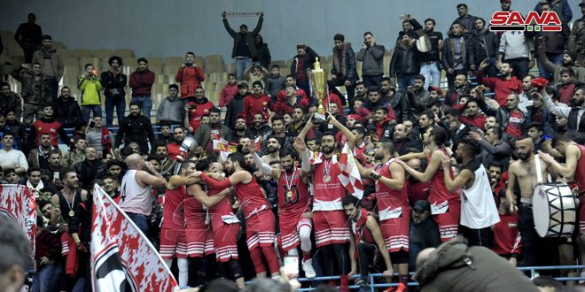 توج فريق الاتحاد بلقب بطولة كأس الجمهورية لكرة السلة للرجال اليوم بعد فوزه على الوثبة بفارق نقطة واحدة 70-69 نقطة في المباراة النهائية التي جمعتهما في صالة الفيحاء بدمشق وسط حضور جماهيري كبير.