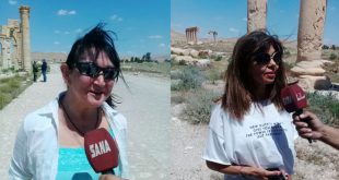 وفي تصريحات لمراسل سانا عبّر السائح البريطاني زابا وهو طالب جامعي عن إعجابه الشديد بالصروح المعمارية في تدمر وقال: “أشعر بسعادة غامرة لوجودي في هذه المدينة التي أزورها لأول مرة ولكن بالمقابل لدي حزن عميق بسبب الخراب الذي لحق بالآثار التي حولها تنظيم “داعش” الإرهابي إلى ركام داعياً المنظمات الدولية المعنية إلى المساهمة في إعادة بناء ما خربه أعداء الثقافة الإنسانية”.