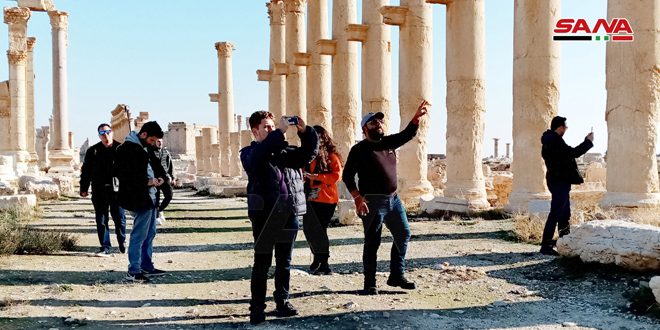 المجموعة السياحية التي تضم أشخاصاً من جنسيات مختلفة زارت المدينة الأثرية ومتحف تدمر الوطني ومعبد بل الشهير وشارع الأعمدة والمسرح التاريخي وأبرز المعالم الأثرية ووثقت الدمار والخراب الذي لحق بمعالم المدينة والمنشآت السياحية جراء الإرهاب.
