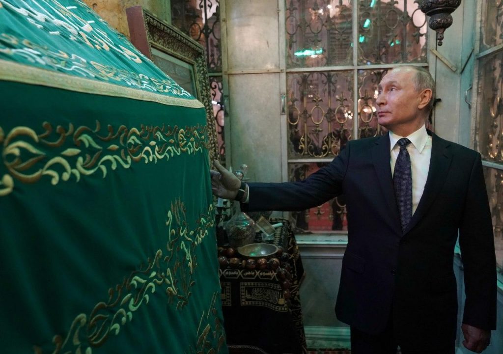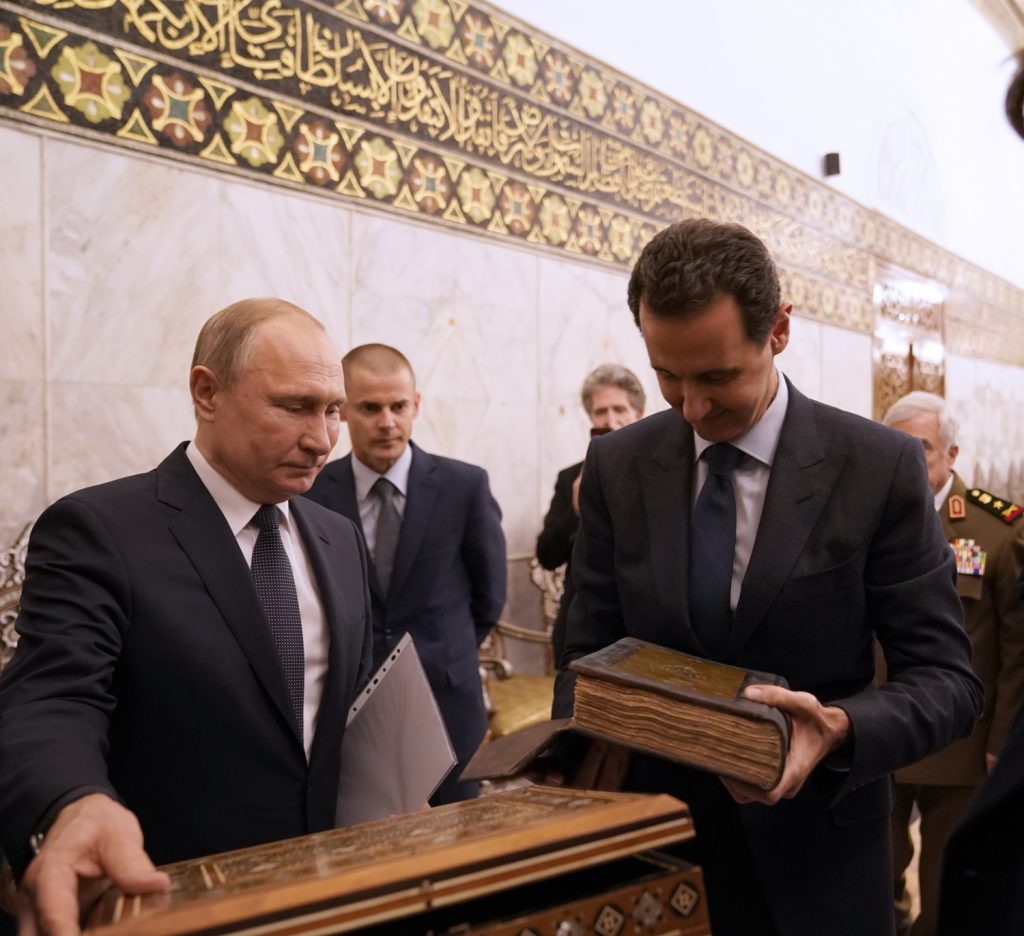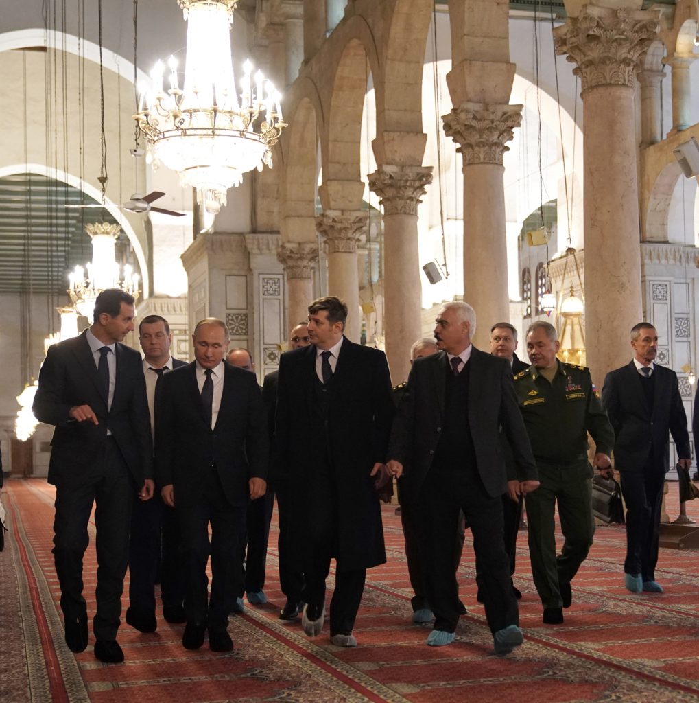 كما جال الرئيسان في العاصمة دمشق وزارا الجامع الأموي الكبير وضريح النبي يحيى عليه السلام “القديس يوحنا المعمدان” فيه وقدم بوتين نسخة تاريخية من القرآن الكريم تعود للقرن السابع عشر هدية للجامع وسجل كلمة في سجل الزوار.