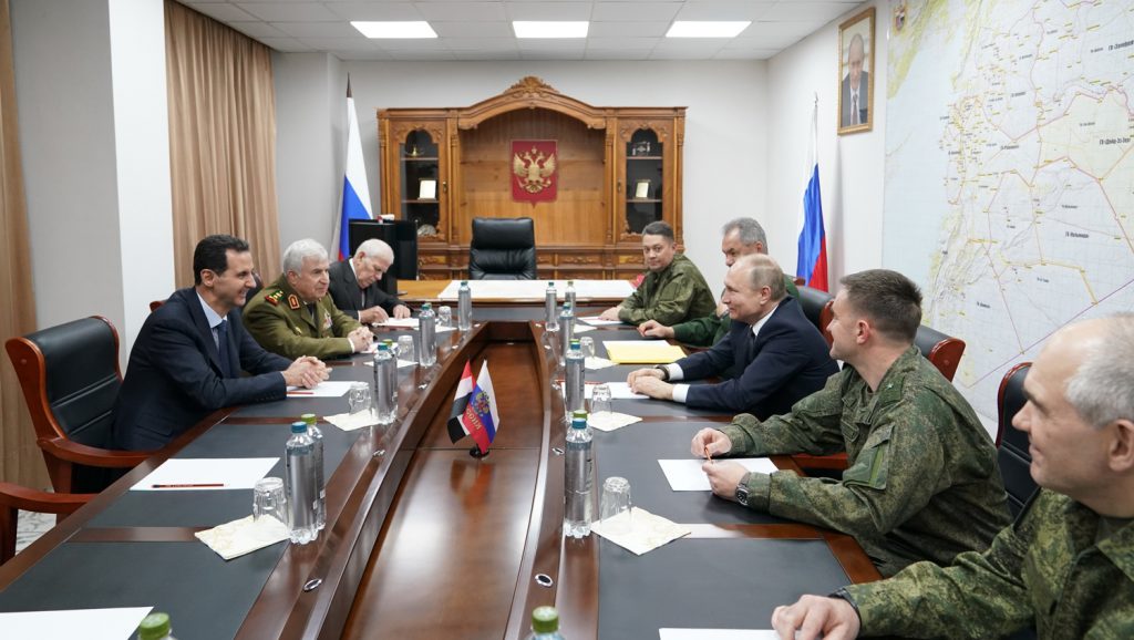 وصل الرئيس فلاديمير بوتين رئيس روسيا الاتحادية اليوم إلى مطار دمشق الدولي في زيارة إلى سورية حيث عقد السيد الرئيس بشار الأسد والرئيس بوتين اجتماعاً في مقر تجميع القوات الروسية بدمشق واستمعا إلى عرض موسع لتقارير عسكرية بحضور وزيري دفاع البلدين.