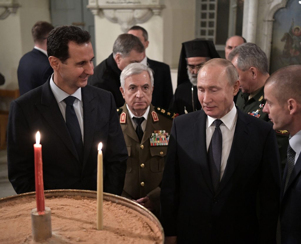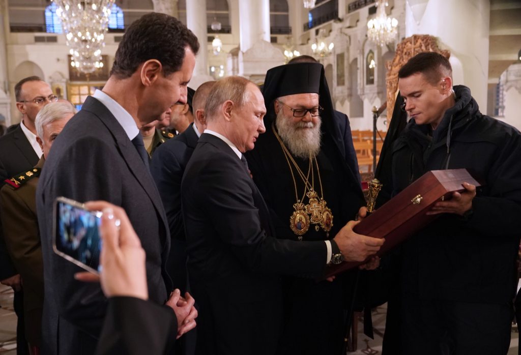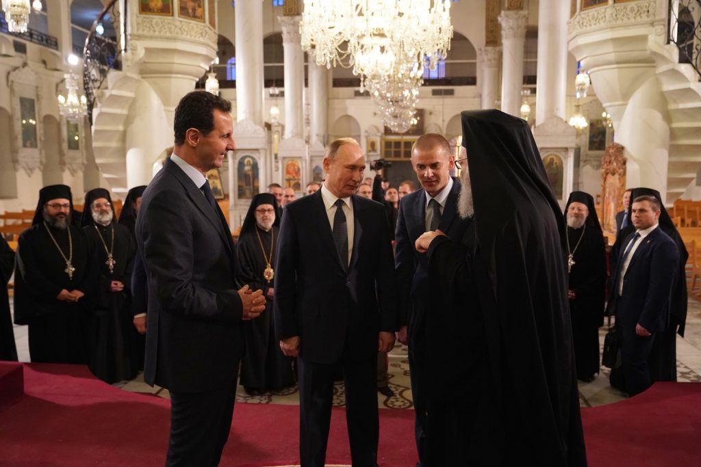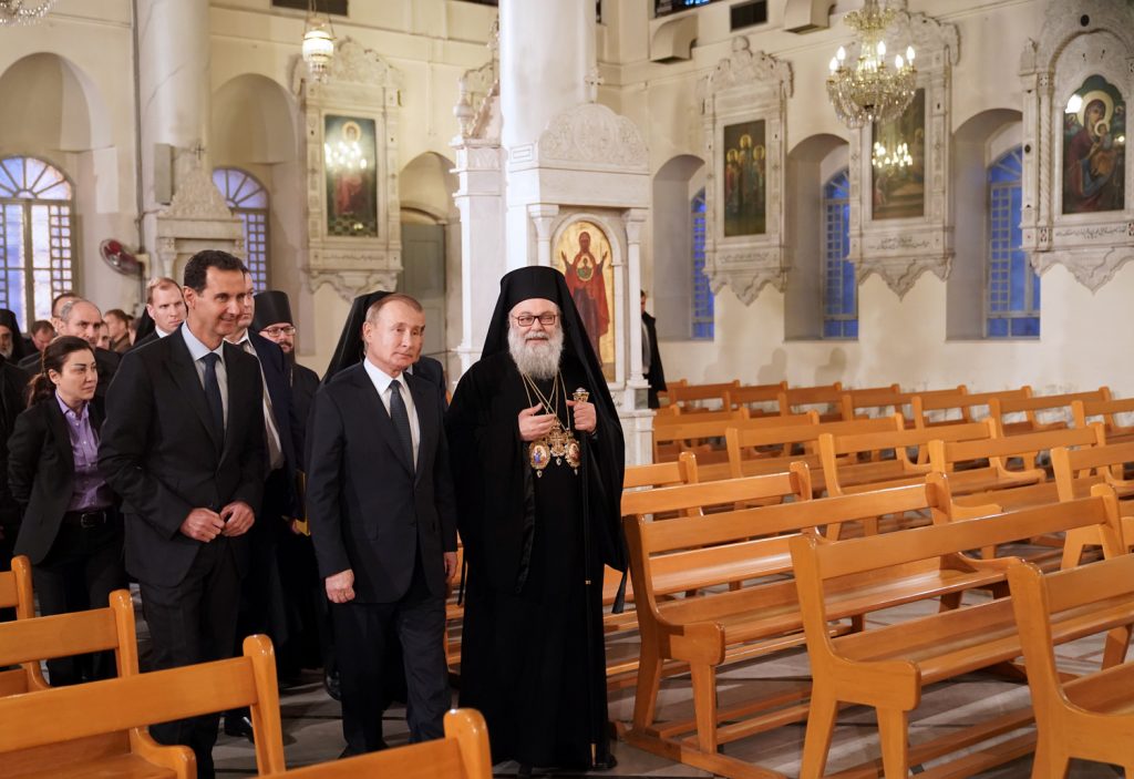 وختم الرئيسان الأسد وبوتين جولتهما في دمشق بزيارة إلى الكاتدرائية المريمية حيث هنأ الرئيس بوتين القائمين على الكنيسة بمناسبة عيد الميلاد المجيد وقدم لهم أيقونة للسيدة العذراء عليها السلام وأضاء الرئيسان شموعاً ليعم السلام والأمان في سورية.