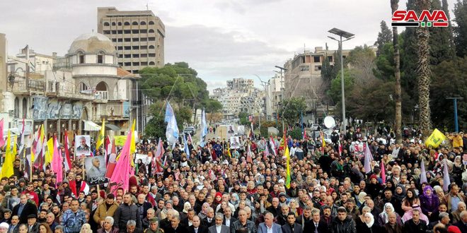 شارك في التجمع الجماهيري محافظ حمص و حشود شعبية وفعاليات حزبية وثقافية ودينية واقتصادية.