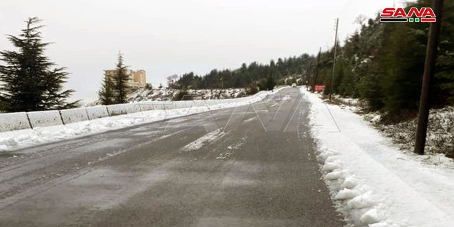 وأوضحت إدارة المرور في نشرتها مساء اليوم أن جميع الطرق المؤدية لمنطقة النبك بريف دمشق سالكة مع تساقط للثلوج وروية ضعيفة بسبب الضباب الكثيف.