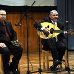 وعزف الفنان هيثم الحامض على العود بعضا من أغاني الموسيقار الأطرش ورافقه على الرق محمد تيرو.