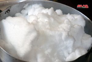 وتذكر السيدة أم نضال التي تنتظر قدوم الثلج سنوياً لتحضير البقسمة أن أهم شيء عند تحضيرها أن يحتوي الثلج حبيبات مبينة أن الكثير من العائلات كانت سابقاً تقدمه كضيافة وتقول لضيوفها: “تفضلوا على خير السنة”.
