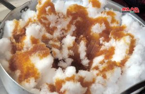 يحمل تساقط الثلوج في محافظة السويداء خلال فصل الشتاء طقوساً تقليدية تناقلها الأبناء عن الأجداد ومنها ما يعرف بأكلة “البقسمة” التي هي مزيج من الثلج ودبس العنب.