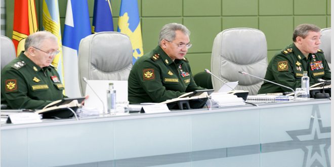 ولفت شويغو في مؤتمر لكادر وزارة الدفاع الروسية في موسكو اليوم إلى أن القائد العام للجيش والقوات المسلحة الروسية قام في السابع من الشهر الجاري بزيارة إلى دمشق التقى خلالها السيد الرئيس بشار الأسد وزار موقع مقر تجميع القوات الروسية بدمشق حيث أثنى الرئيس بوتين على عناصر القوات المسلحة على التنفيذ المثالي للمهام التي انيطت بهم في مكافحة الإرهاب الدولي.