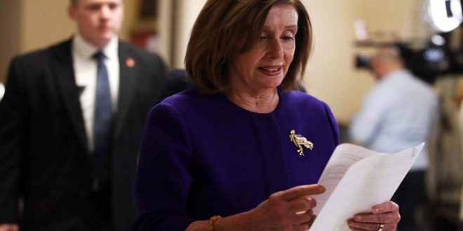 ونقلت وكالة ا ف ب عن بيلوسي قولها في رسالة وجهتها إلى اجتماع لأعضاء الحزب الديمقراطي الأمريكي اليوم “طلبت من رئيس اللجنة القضائية جيري نادلر أن يكون جاهزاً كي يرسل الأسبوع المقبل قراراً يحيل مادتي العزل إلى مجلس الشيوخ” مشيرة إلى أنها ستجري “مشاورات مع النواب الديمقراطيين الثلاثاء المقبل حول سبل المضي قدماً في ذلك”.