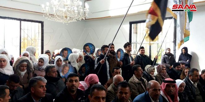 وتوجه الحضور بالتهنئة للأسيرين المحررين اللذين حملا قضية الجولان بقلبيهما ودافعا عنها وقدما التضحيات في سبيلها وأمضيا سنوات السجن القاسية لرفضهما التنازل عن هوية الجولان العربية السورية.