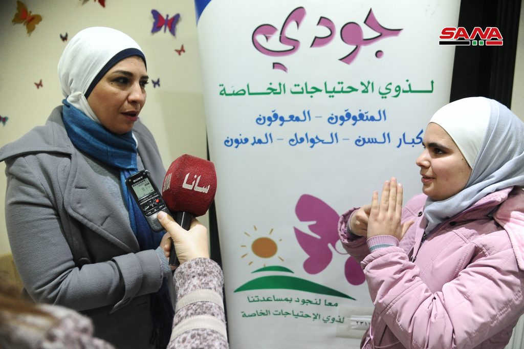 مديرة معهد تعليم الأشخاص ذوي الإعاقة السمعية بدمشق التابع لوزارة الشؤون الاجتماعية بدمشق سوسن رزق نوهت بدور المشاريع التنموية في إكساب معلومات ومهارات للأشخاص ذوي الإعاقة وإظهار إمكانياتهم وتطويرها لتكون طريقهم للعمل المهني مستقبلا مبينة أنه يشارك بالمشروع 15 طالبا وطالبة من طلاب المعهد.