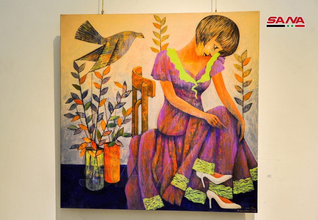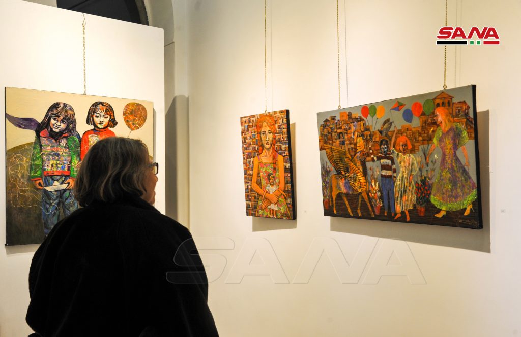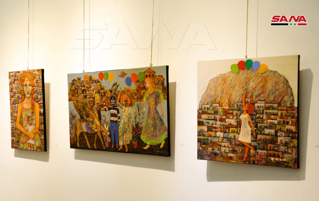 السمان الذي أراد من معرضه التعبير عن رؤيته لسورية المستقبل أوضح أن الفنانين التشكيليين والمثقفين السوريين الواعين لقيمة أرض الوطن كانوا دائما على ثقة بأن المستقبل سيحمل النصر القريب رغم كل الظروف الصعبة التي عشناها وذلك بفضل تضحيات الشهداء مبينا أن وجود المرأة بكثرة في لوحاته يعبر عن أمهات وزوجات وبنات الشهداء والأطفال في أعماله هم أبناء الشهداء.