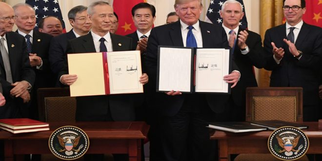 وقع الرئيس الأمريكي دونالد ترامب ونائب رئيس الوزراء الصيني ليو خه في واشنطن اليوم المرحلة الأولى من الاتفاق التجاري بين البلدين.