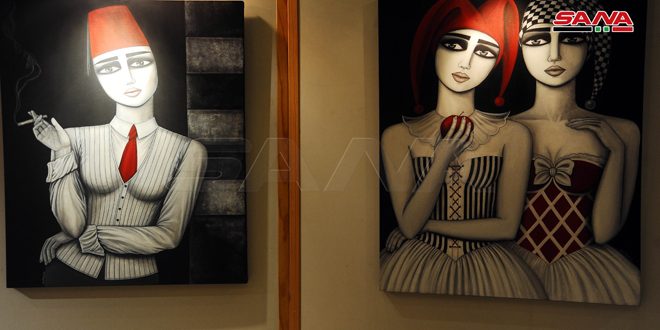 استفادت التشكيلية سنا أتاسي من تعدد مواهبها الفنية في صياغة لوحات معرضها الفردي الأول بدار الأسد للثقافة والفنون والتي صورت من خلالها الروح في عوالم الأنثى الداخلية.